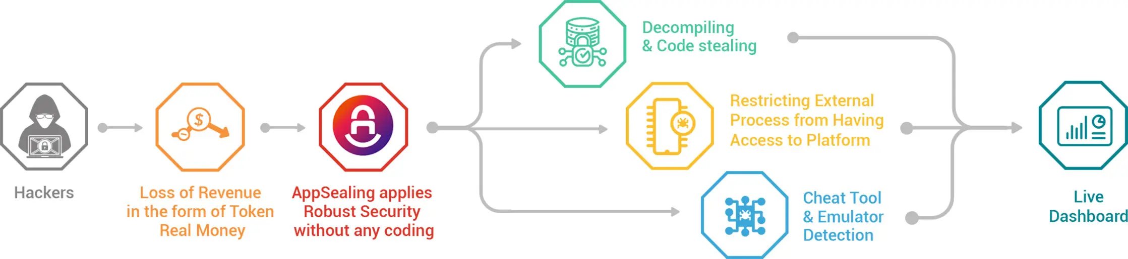 「FreeMIUM」ビジネスモデルに対する攻撃を中止させ、お客様の信頼を向上させます。AppSealingを使用し、あなたの「FreeMIUM」クライアントを複雑なハッキング攻撃から守ります。